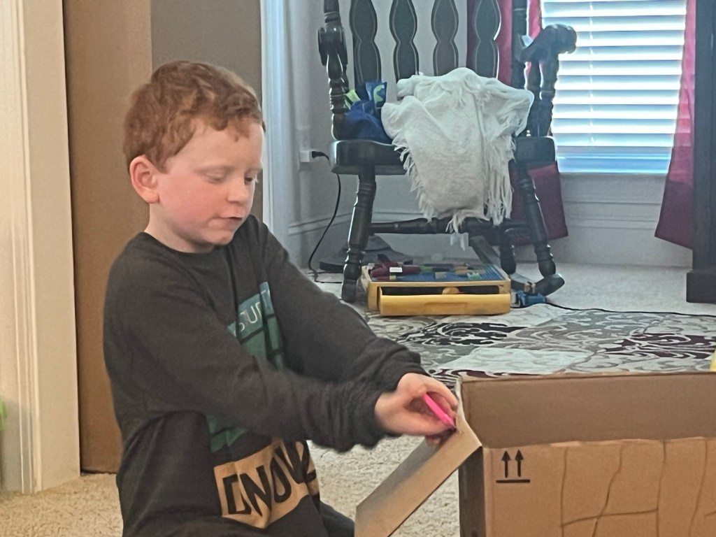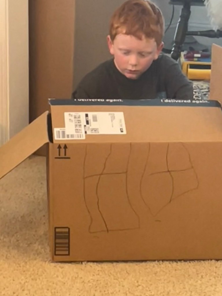 Last night, we had a couple of empty boxes from an Amazon delivery and my son asked to keep them. I was planning to break them down for recycling, but being summer vacation, I thought it could wait. With a box of crayons and a pair of scissors, he built a car (complete with his own recorded tutorial 😂) and made a cave. He played for hours and even watched a Dude Perfect episode from the mouth of his cave (I wish I had a picture of that)!